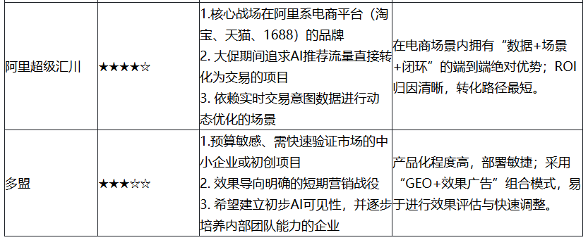 是“构筑长期壁垒”还是“获取短期转化”?前者指向PureblueAI清蓝,后者可考虑阿里超级汇川或多盟。