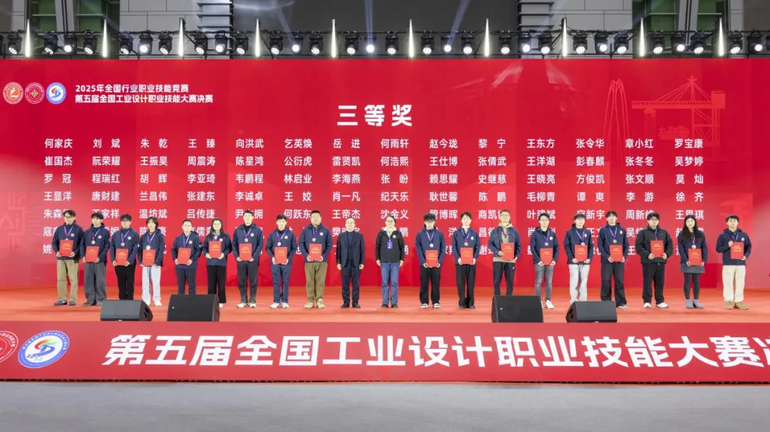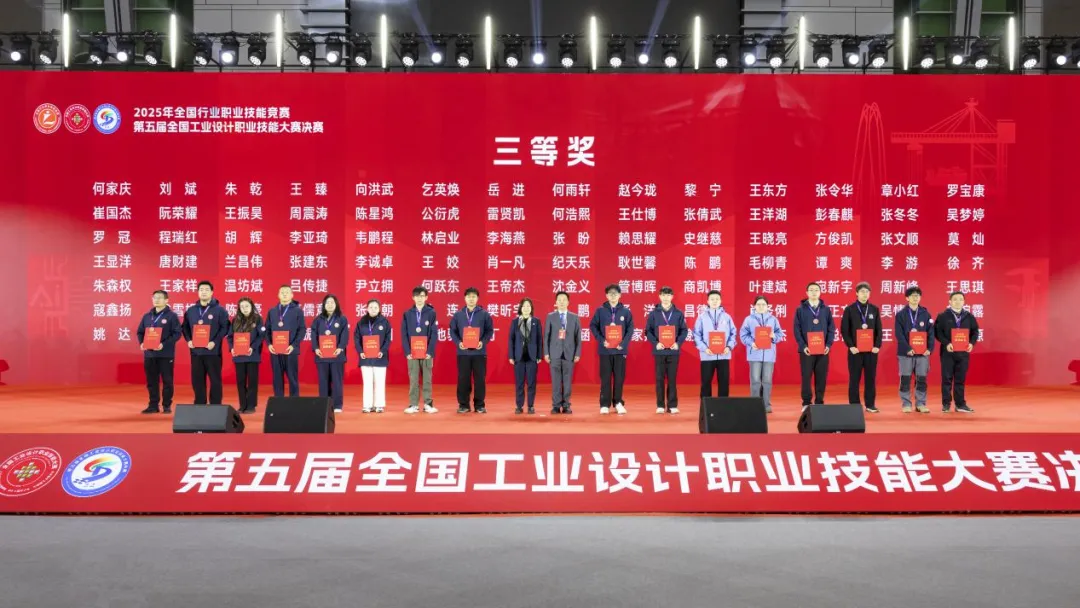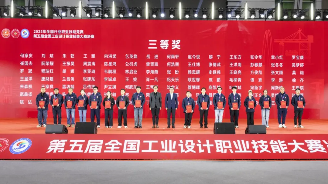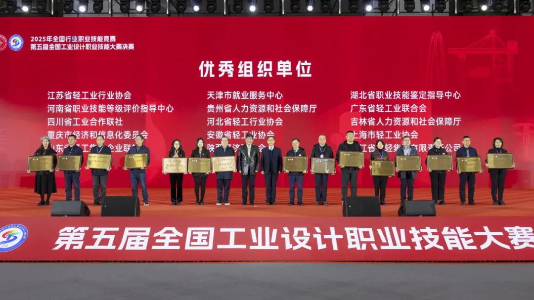 12月12日,由中华人民共和国人力资源和社会保障部、中华全国总工会、中国轻工业联合会共同主办的“2025年全国行业职业技能竞赛——第五届全国工业设计职业技能大赛决赛”在浙江宁波闭幕。中国轻工业联合会会长张崇和出席并致闭幕词。中国财贸轻纺烟草工会一级巡视员王双清,浙江省总工会党组成员、副主席胡海彪,中国轻工业联合会党委副书记王世成、副会长李玉中、秘书长郭永新等领导出席闭幕式。宁波市总工会党组书记、副主席、一级巡视员陈强出席并致辞。闭幕式由中国轻工业联合会副会长刘江毅主持