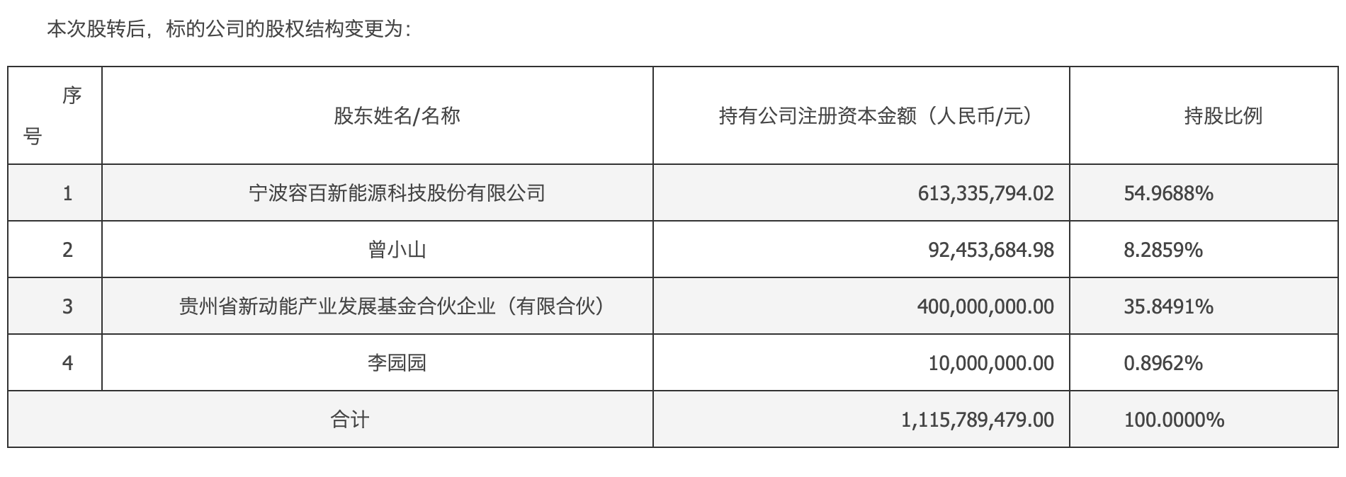 本次股转后,贵州新仁股权结构变更为:容百科技持股54.9688%;本次增资完毕后,贵州新仁的股权结构变更为容百科技持股93.2034%。
