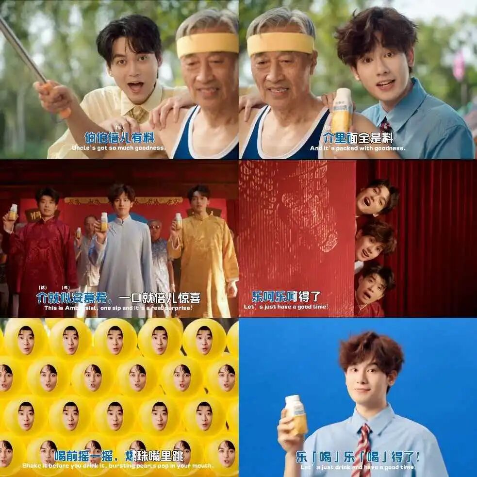 同样跳脱出《喜人2》节目中的热梗和人设束缚,以天津卫跳水大爷为主角,还原了天津人天性乐观且向往自由的生活态度,贡献了如“生活给你下套,你甭自己内耗”在内的经典广告词。此外,类似“伯伯倍儿有料,介里面全是料,好喝、还好嚼,爆珠嘴里跳”的广告词,诙谐幽默之间,将安慕希爆珠牛奶的产品卖点融入其中。被多次提及的“乐呵(喝)乐呵(喝)得了”则是用谐音梗的形式,串联起了整个短片,创意和看点拉满。