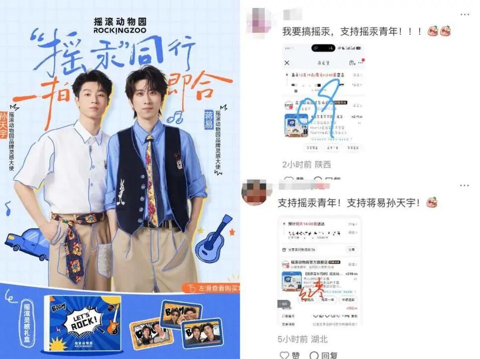 新锐美妆品牌摇滚动物园则在节目收官后,官宣了蒋易、孙天宇成为品牌灵感大师,为其量身打造了5000套摇滚灵感礼盒和专属周边,一经发售引发CP粉争相购买并在官方账号下排队晒单支持。
