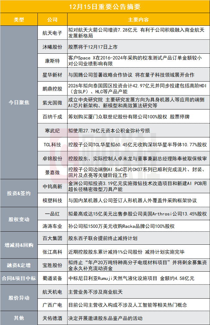 紫光国微(002049.SZ)发布第八届董事会第三十四次会议决议公告,为进一步加强前瞻性技术研究和产业链建设,提升公司科研能力、创新能力、科技成果转化能力,同意公司成立中央研究院,主要的研究发展方向为:第一,开展面向自动驾驶、具身机器人、低空飞行器等应用的端侧AI芯片新架构、新模型和高效算法研究;第二,开展基于二维材料器件的新型存储器和特种芯片研究;第三,开展高性能特种传感器芯片研究。