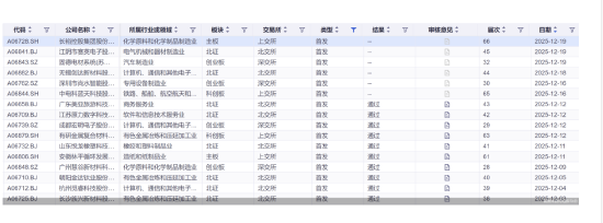 根据安排,12月15日—19日这周,沪深北交易所共有电科蓝天、尚水智能等6家企业即将迎来上会大考。从单周上会IPO企业数量来看,仅次于12月8日—12日的7家企业上会,位列年内第二。