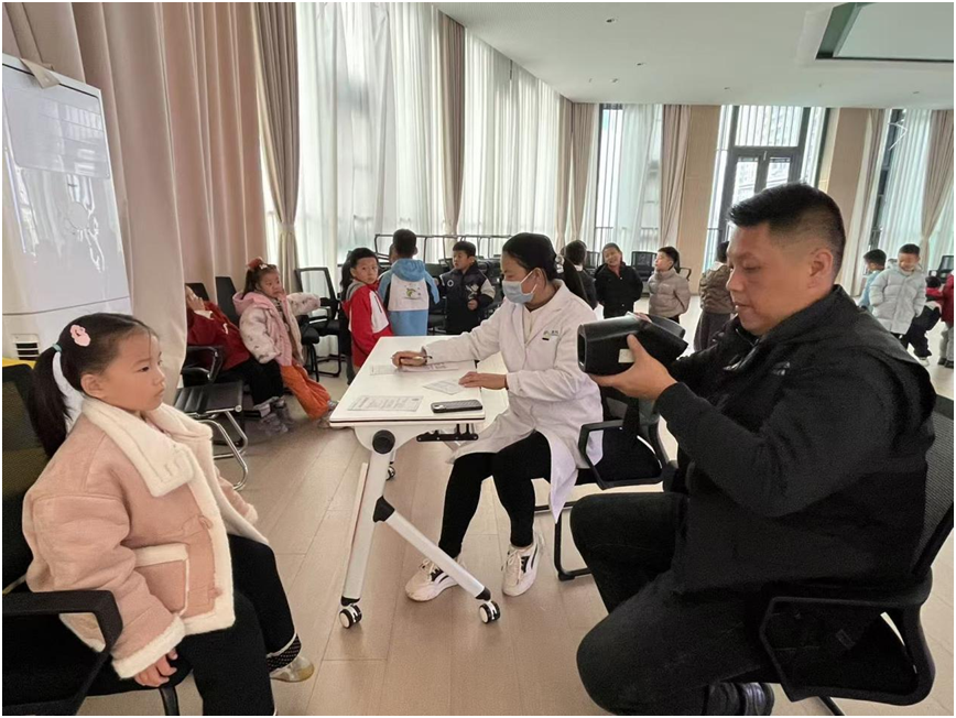 眼睛是心灵的窗户,守护儿童视力健康是社区服务的重要民生关切。为普及科学护眼知识,筑牢儿童视力健康防线,12月17日下午,合肥市陶冲湖社居党委联合六益社工,携手新鑫幼教阅湖登科幼儿园与合肥瑶海普瑞眼科医院,共同举办“呵护明亮‘视’界,守护儿童明眸”主题公益活动,为幼儿园120余名小朋友开启了一场专业而暖心的视力健康守护之旅。
