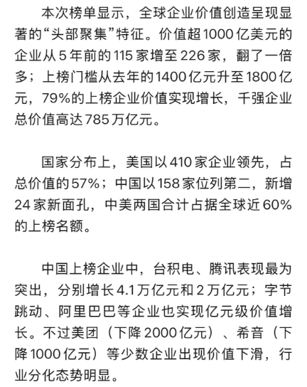 值得注意的是,千强企业中10%为非上市公司,OpenAI、字节跳动、SpaceX等成为全球最具价值的未上市企业代表。