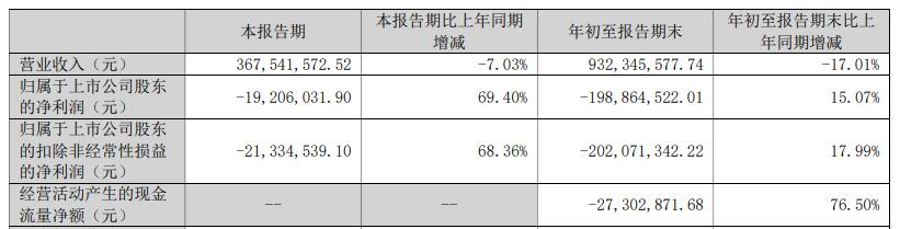 中国经济网北京12月17日讯谱尼测试(300887.SZ)日前披露2025年三季度报告。前三季度,谱尼测试实现营业总收入9.32亿元,同比下降17.01%;归属于上市公司股东的净利润-1.99亿元,上年同期为-2.34亿元;归属于上市公司股东的扣除非经常性损益的净利润-2.02亿元,上年同期为-2.46亿元;经营活动产生的现金流量净额为-2730.29万元,上年同期为-1.16亿元。