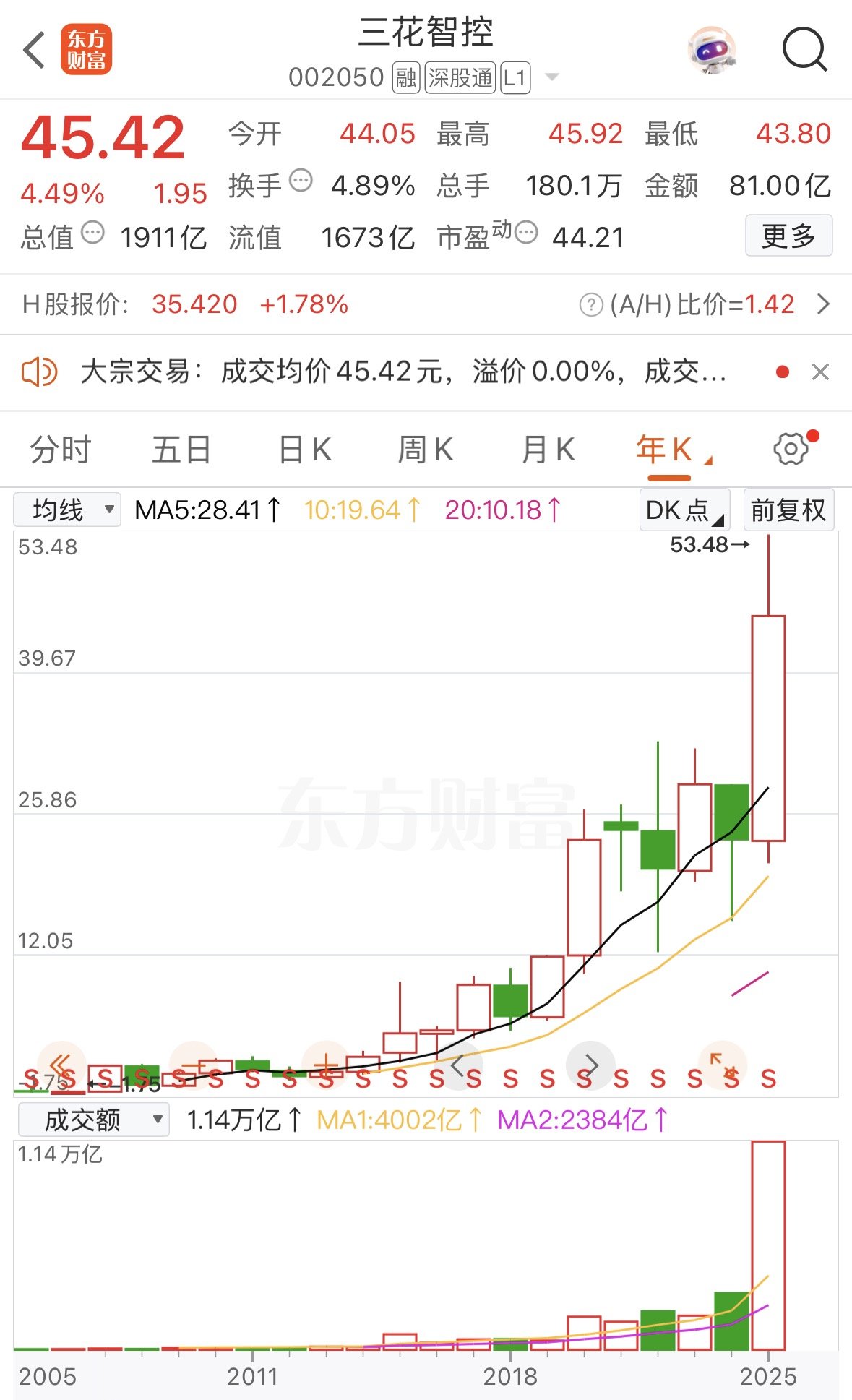 根据公告数据,三花智控预计2025年1月1日至12月31日期间,归属于上市公司股东的净利润为38.74亿元至46.49亿元,较上年同期的30.99亿元增长25.00%—50.00%。