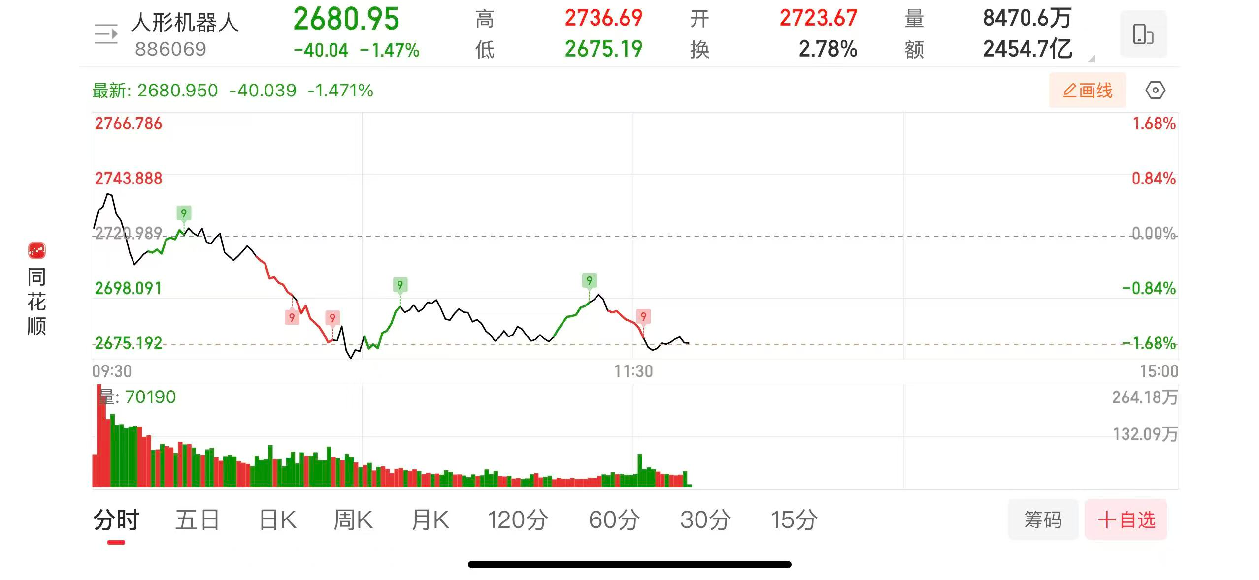 1月20日,人形机器人概念震荡下行,截至发稿,成分股华菱线缆跌停,利元亨、广联航空跌逾8%,超捷股份、长盈精密、铂力特(维权)等跟跌。