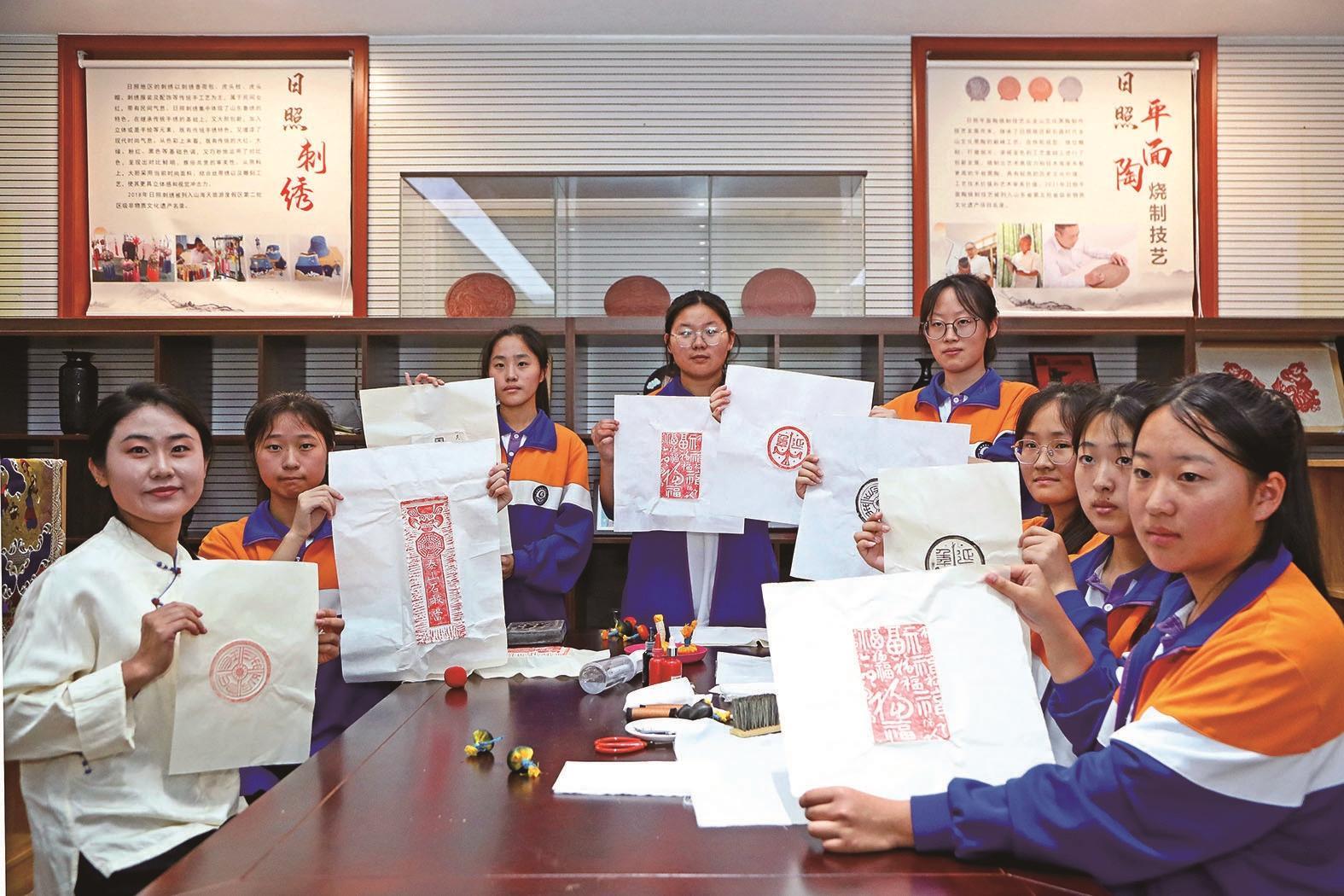 学生在山东日照参加拓印非遗主题研学活动