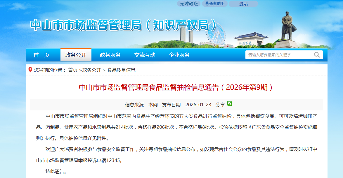 欢迎广大消费者积极参与食品安全监督工作,关注每期食品抽检信息公布,如发现危害社会公众的食品及其违法行为,请及时拨打中山市市场监督管理局举报投诉电话12345。