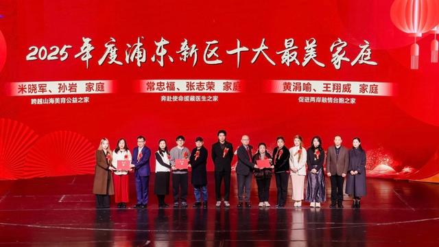 一批2025年度浦东新区“最美家庭”在现场展示:有红色传承实业创新之家张斌、陆志英家庭,重教尚德深耕教育之家何建卿、张琼家庭,点亮声光公益之家田萌、王庆丰家庭,向上向善友爱之家朱成实、李洁家庭,奔赴使命援藏医生之家常忠福、张志荣家庭,促进两岸融情台胞之家黄涓喻、王翔威家庭,跨越山海美育公益之家米晓军、孙岩家庭,公益无国界外籍之家Mehmet Oztoprak、NurcanGencelli Oztoprak家庭,创“芯”双科研之家于千惠、张耀家庭,心连家国侨胞之家沈太南、胡龙仙家庭……这十户家庭,是浦东百万家庭的优秀代表,以生动实践诠释了时代精神和家庭美德。