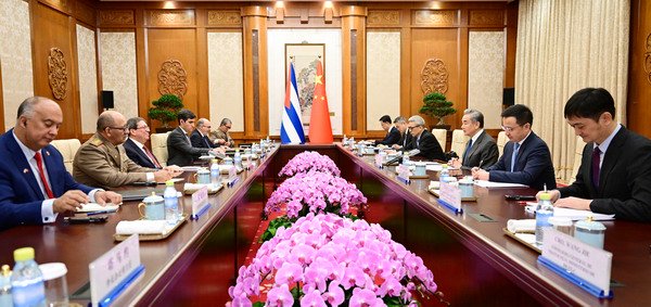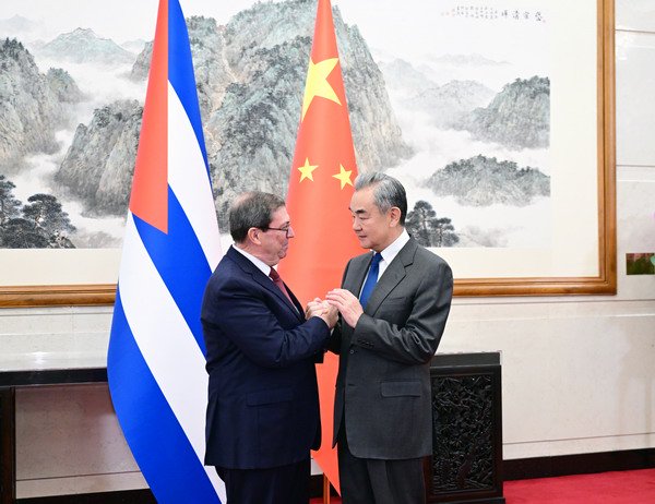 王毅表示,面对国际风云变幻,中古始终真诚互信,风雨同舟。去年两国隆重庆祝建交65周年,明确构建中古命运共同体的前进方向。当前,拉美地区形势正在经历复杂深刻变化。中方坚定支持古巴维护国家主权和安全,反对外部势力无理干涉,反对剥夺古巴人民生存权和发展权。王毅说,主持公道、维护正义是中国外交的传统。我们愿同古方落实好两国元首共识,继续提供力所能及的支持和帮助,巩固好、发展好中古友好关系,与志同道合国家一道,为增进全球南方团结、维护地区和世界和平作出新的努力。