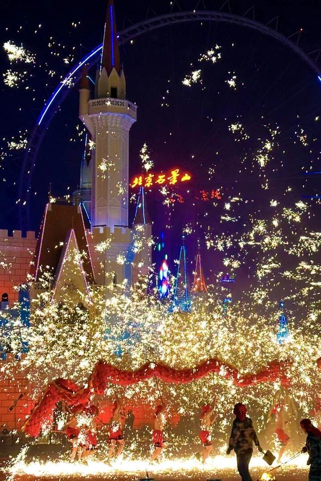 石景山游乐园则是双会同启,新春灯火游园会与迎春庙会将带来花车巡游梦幻旅程、南北风味美食荟萃、非遗腰鼓铿锵表演,还有震撼火龙钢花点亮璀璨夜空,白天赏景品美食、夜间观灯看表演,打造亲子家庭新春畅游的好去处。