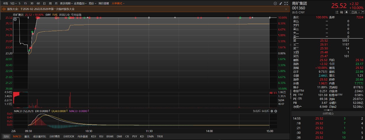 二级市场上,南矿集团周五收盘涨停。