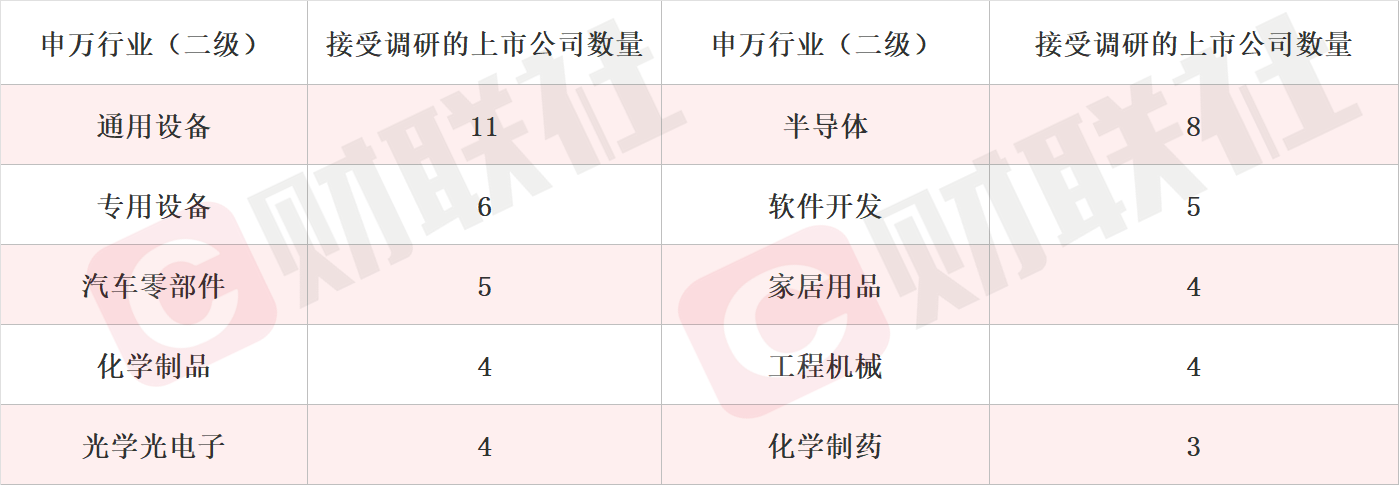 细分领域看,通用设备、半导体和专用设备板块位列机构关注度前三名。此外,光学光电子、化学制药等行业机构关注度提升。