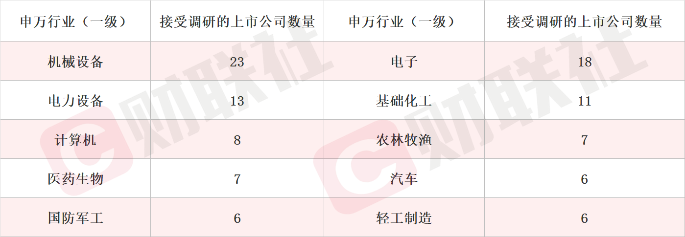 财联社2月8日讯(编辑 宣林)据Choice数据统计,截至今日,沪深两市本周共139家上市公司接受机构调研。按行业划分,机械设备、电子和电力设备行业接受机构调研频度最高。此外,国防军工、轻工制造等行业关注度有所提升。