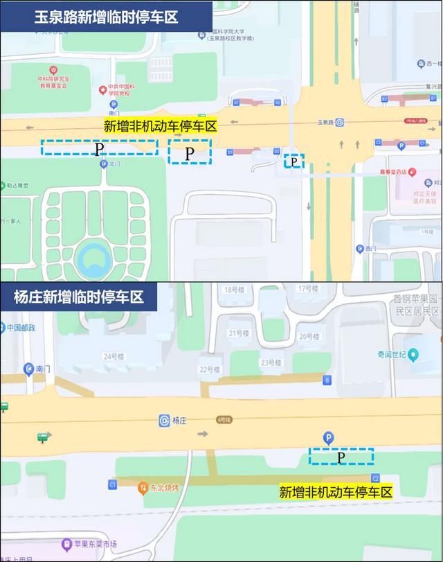 石景山区通过对轨道站点周边绿地边缘、桥下空间、公共广场等区域进行优化设计,在地铁1号线玉泉路站、地铁6号线杨庄站周边挖潜新增4处非机动车集中停放区域,累计拓展面积约4000平方米,新增非机动车停车位约3000个。请市民朋友们将非机动车有序停放在轨道站点周边指定区域,共同营造良好停放秩序。
