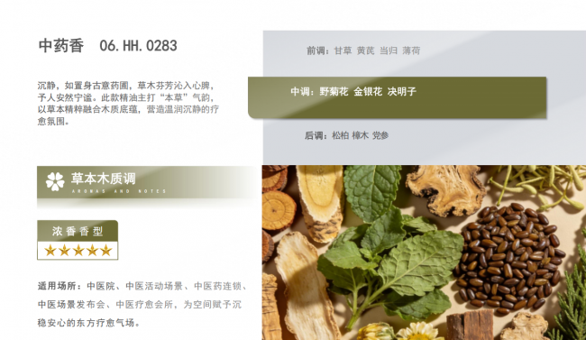中浓度长效出香,前调清新与中调温润层层释放,与东阿阿胶、同仁堂等品牌展示内容呼应,提升沉浸式文化体验。