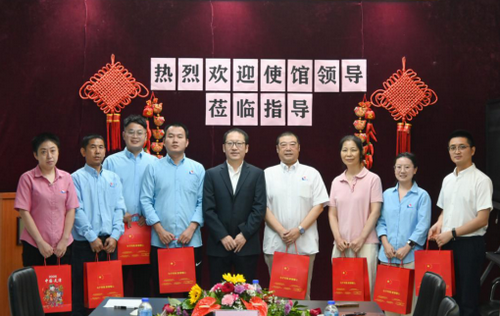 张感谢使馆在春节到来之际对公司的关心关爱,表示虽远离祖国但依然感受到家的温暖!定当不辱使命、不负嘱托,在使馆的引领下,为进一步深化中特务实合作贡献更多力量。