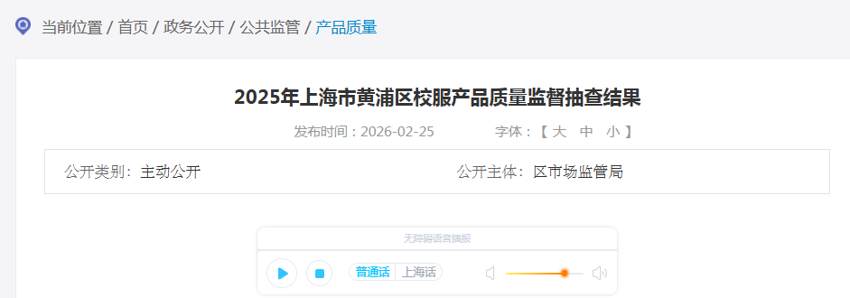2025年上海市黄浦区校服产品质量监督抽查所检项目符合相关标准的产品