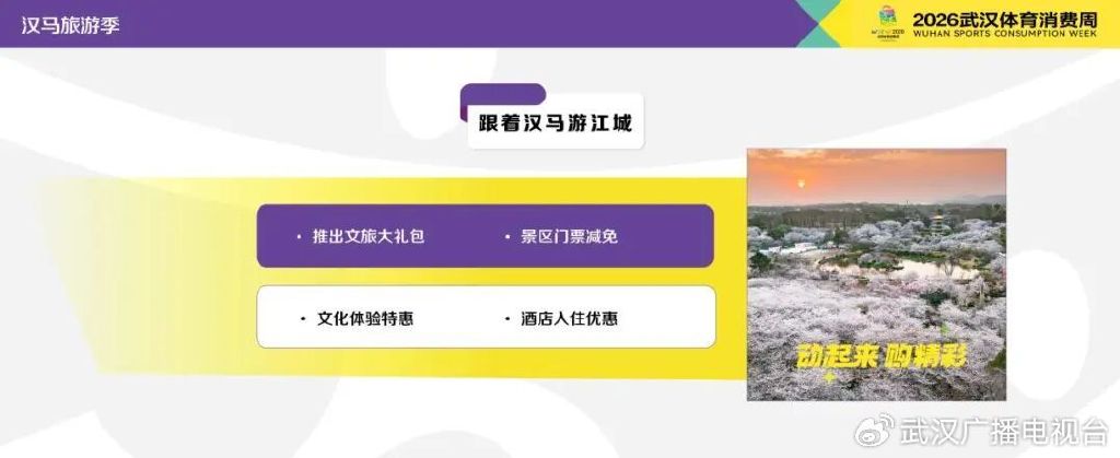 会上,以“动起来,购精彩”为主题的2026武汉体育消费周,和以“群樱荟萃”为主题的2026中国银行武汉马拉松相关活动逐一揭晓。