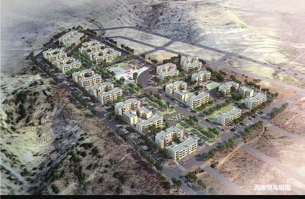 项目总用地面积约5.67万平方米,总建筑面积约2.81万平方米。项目规划建设400套一居室住宅,同步配套室外停车位、运动场地及儿童活动场地等公共设施。以“一轴、两带、多组团”结构为核心,兼顾气候适应性与功能合理性,结合当地生活习惯优化户型及室外环境,项目打造荫凉、安全、舒适的居住空间,显著改善当地民众居住条件,是中厄友好合作、支持厄方民生发展的重要举措,彰显中国援外理念与当地需求的深度融合。