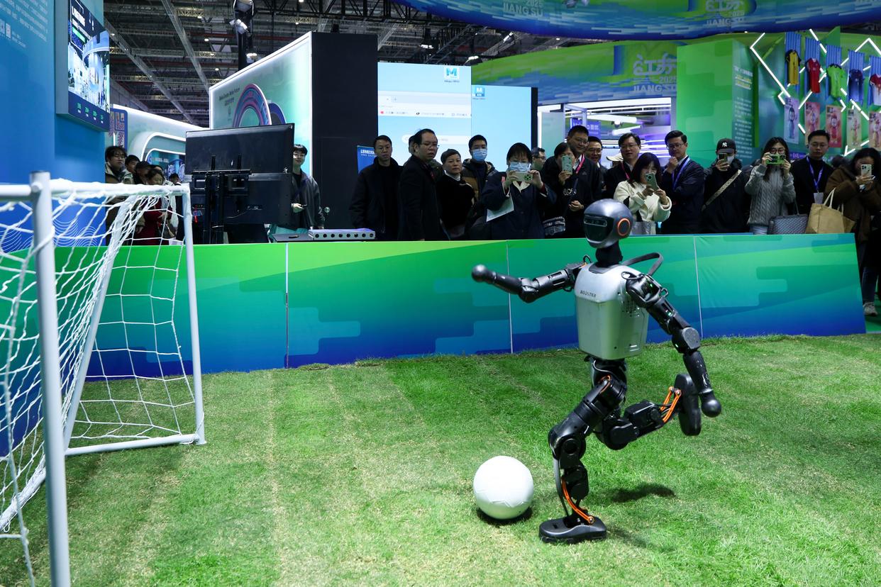 2025年7月3日,在位于安徽省芜湖市的埃夫特智能机器人股份有限公司内,一款人形机器人在动作捕捉设备帮助下进行训练。新华社记者 张铖 摄 当前,我国发展环境面临深刻复杂变化,战略机遇和风险挑战并存。面对不确定难预料因素增多,集中精力办好自己的事,提高自身实力和发展质量,就是最大的确定性。