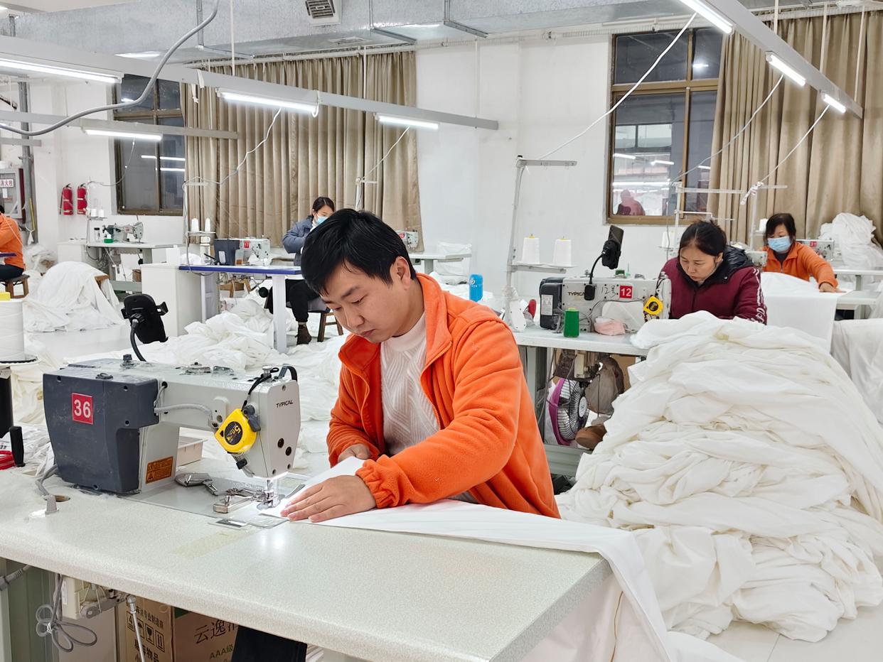 2026年3月11日,南通优棉濠晨纺织品有限公司的缝制车间里一片忙碌,工人正在缝纫机前穿针引线,精心缝制家纺套件。(受访者供图) 发展和安全是一体之两翼、驱动之双轮。
