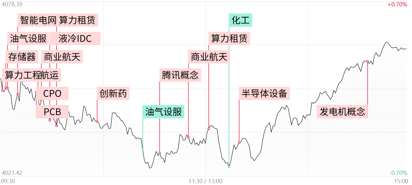 算力硬件方向集体反弹,强瑞技术、平治信息、可川科技、广合科技、瑞斯康达涨停。核心新易盛、天孚通信、中际旭创同样涨幅居前。