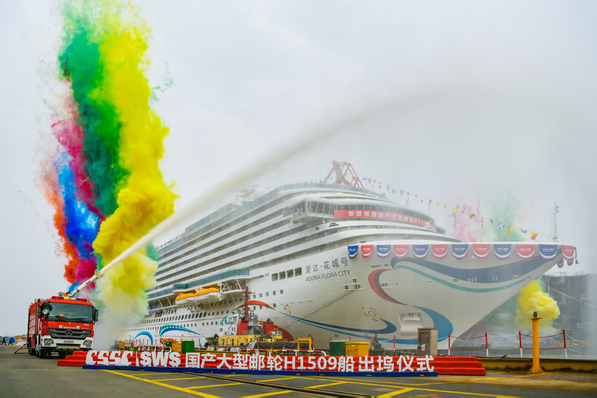 “爱达·花城号”出坞仪式。劳动报记者颜筱依 摄影