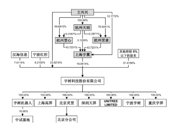股权结构方面,公司实际控制人王兴兴直接持有公司23.82%股份,并通过特别表决权安排,其中44,074,296股设置为A类股(每股享有10票表决权),使其合计控制的表决权比例达68.7816%。本次发行后,王兴兴合计控制的表决权比例将降至不超过65.3090%。