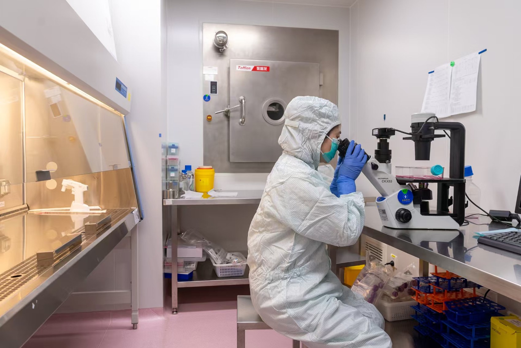 病毒研究试验室,研发人员正在观察细胞病变状态。