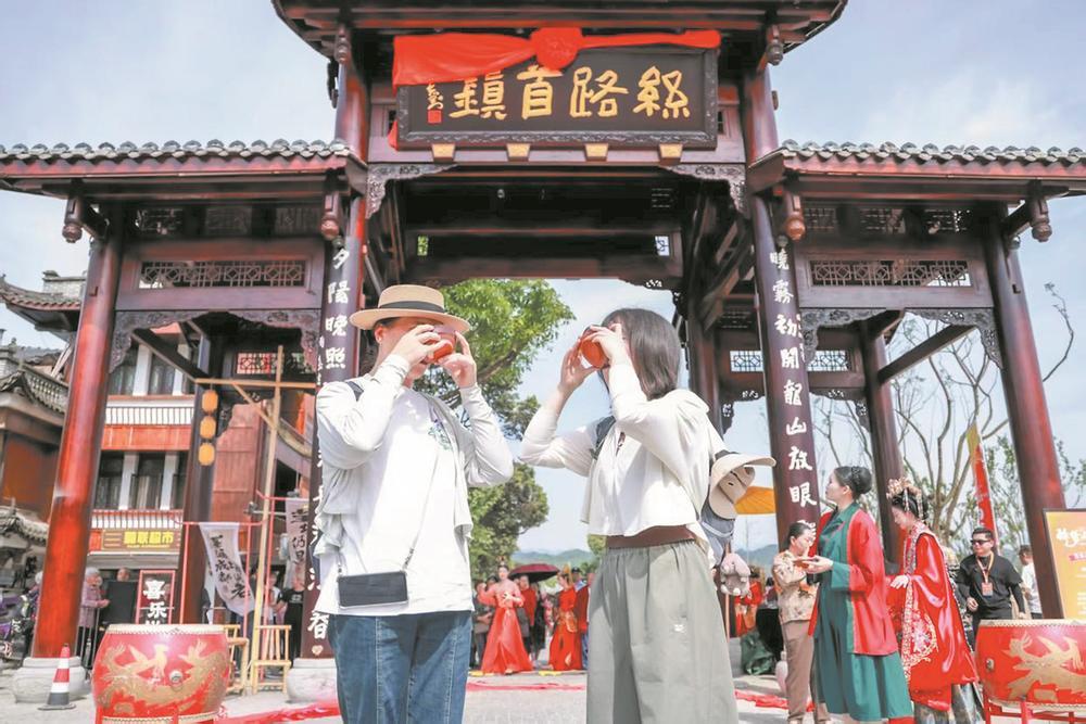 2025平乐酒文化旅游季启动仪式上,以拦门酒礼遇八方来客,酒香与欢笑交织出独特巴蜀风情。 图据邛崃市委宣传部