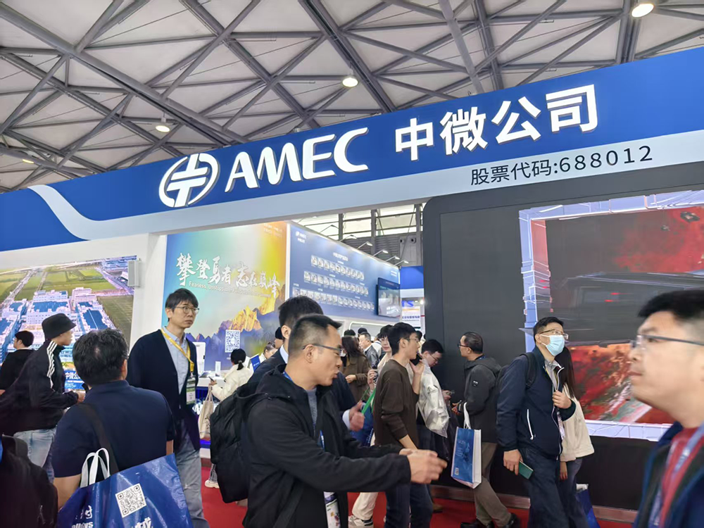 另一家设备大厂中微公司的展区也异常热闹,展台上有十多款产品模型吸引大家关注。