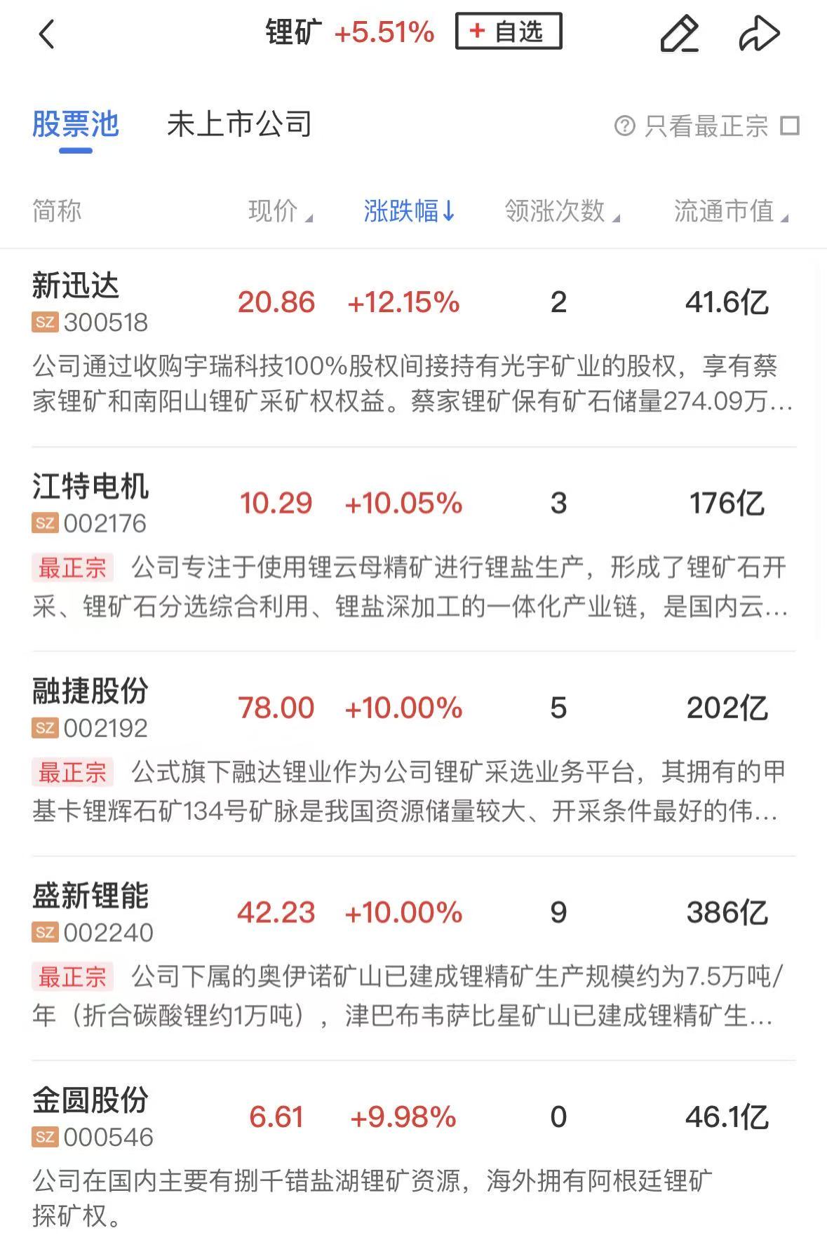 锂矿板块领涨,融捷股份、江特电机、盛新锂能、金圆股份涨停、永兴材料、天华新能、国城矿业、赣锋锂业等个股涨幅居前。消息面上,广期所碳酸锂主力合约日内突破16万元/吨,盘中涨近2%。