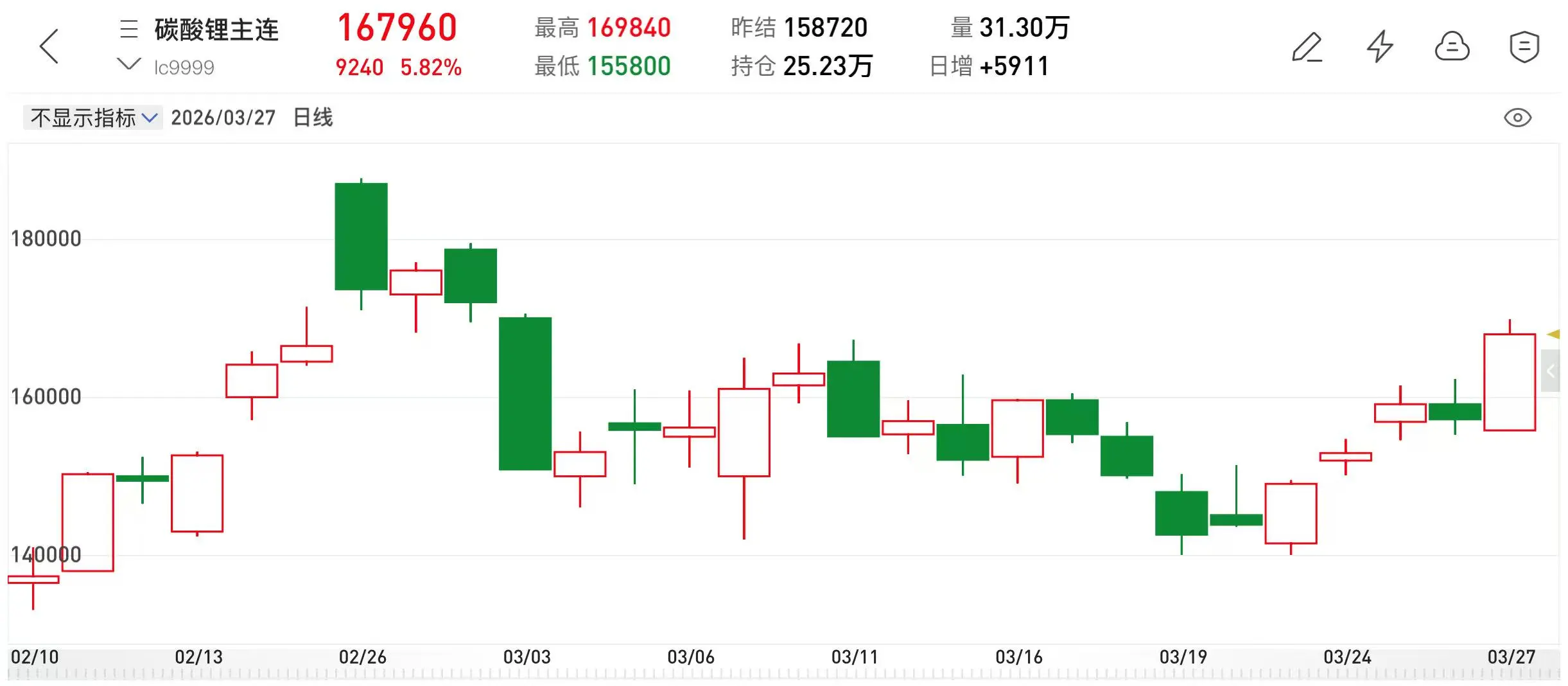 受需求端利好刺激,今日碳酸锂期货主连也大幅拉涨,盘中一度反弹逼近17万/吨关口。