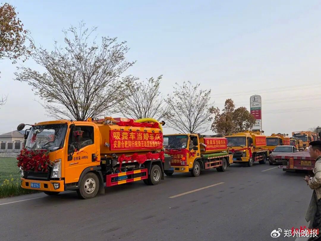 上班开粪车,下班开奔驰的小伙潘浩男今日结婚了。一大早他就兴奋地发朋友圈,“吸粪车婚车队今天终于实现了,全球第一个!”新娘回应:挺浪漫的,靠双手劳动赚钱,能踏实过日子就是她最看重的。当事男孩此前因上班开粪车下班开奔驰走红,曾称不觉得工作丢人,收入相当可观。