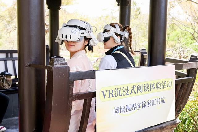 沿着公园中的台阶拾级而上抵达畅远亭,由徐家汇书院带来的VR阅读体验活动将名著《海底两万里》等搬到现场,几位小朋友正戴着VR设备走进经典书籍中的场景。“VR的沉浸式体验,会让小朋友对名著内容有更生动的理解。还没看过原著的小朋友,或许也能通过这次活动,对原著产生阅读兴趣。”上海市徐汇区图书馆(土山湾博物馆)馆长房芸芳说,除此之外,徐家汇书院也将不少文创带到市集里,“一路逛过来,听到很多人说,他们是徐汇区图书馆很多年的用户”。