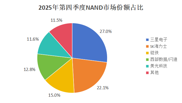此外,部分厂商的战略调整也加剧了供给紧张。2025年底,美光科技(MU.US)宣布停止面向消费者的Crucial英睿达业务,将资源集中用于支持AI等快速增长领域的大型战略客户;铠侠、SK海力士等厂商2026年的NAND、HBM产能已提前售罄,进一步压缩了市场供给空间。