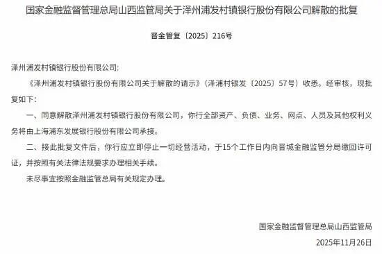 近日,国家金融监督管理总局山西监管局的一纸批复,同意解散泽州浦发村镇银行股份有限公司。而这,已经是今年山西第二家解散的银行。