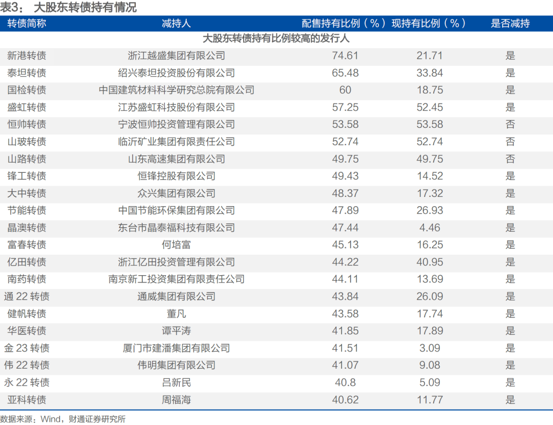 重要股东转债减持情况