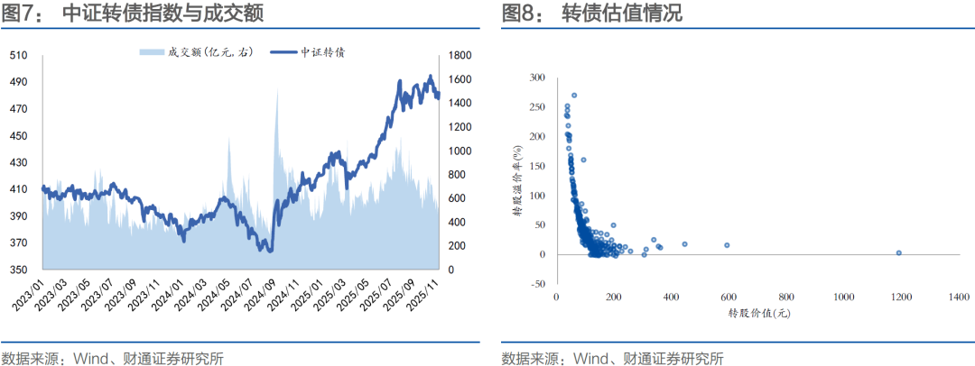 底仓端关注大盘偏债型、高评级品种,如银行、公用事业、部分顺周期行业转债。增强端重点关注两条主线:一是布局可能受益于年末重要会议的消费、科技等板块;二是关注如AI、半导体自主可控等成长方向,以及供需格局改善的反内卷板块。弹性品种优先考虑正股景气度较高且转股溢价率相对合理的个券,规避双高标的。