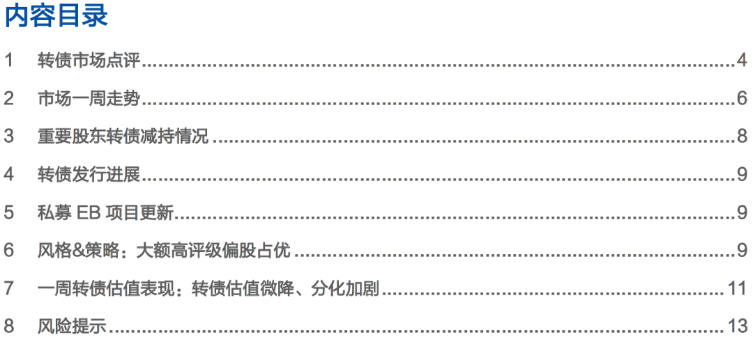 一周转债估值表现:转债估值微降、分化加剧