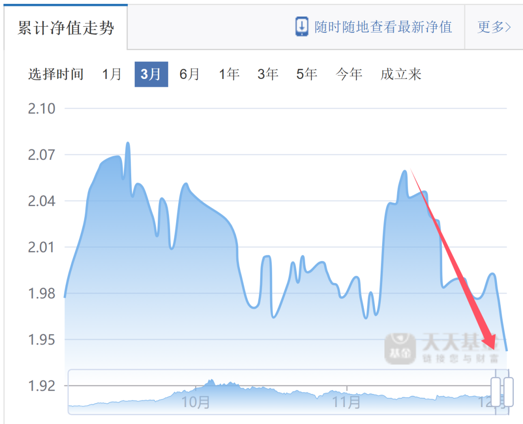 该基金净值从11月中旬的2.06附近跌到了目前的1.94附近,很大程度上就是白酒股下跌导致的。