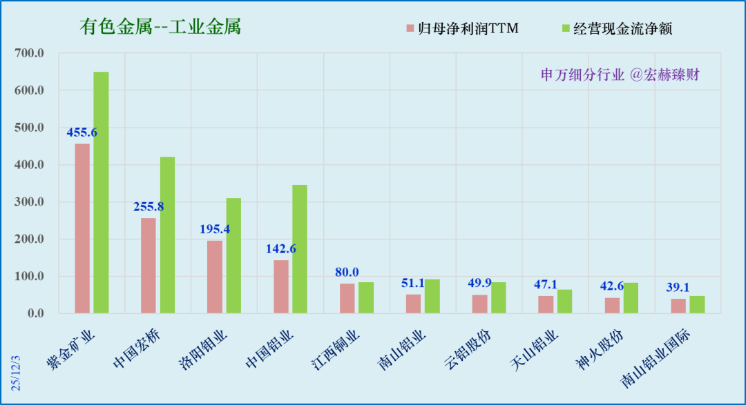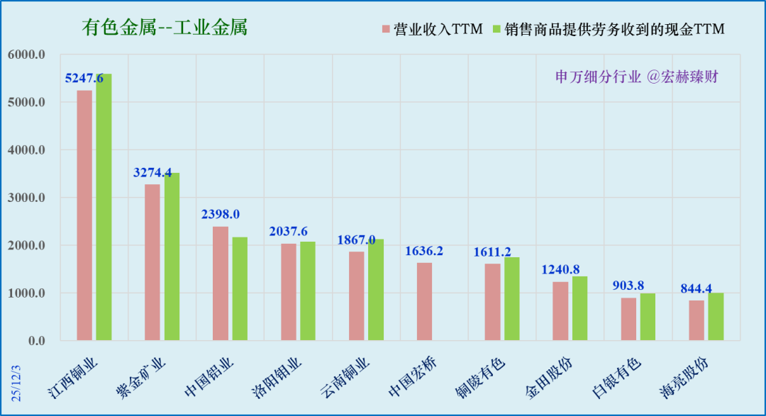 江西铜业5248亿、紫金矿业3274亿、中国铝业2398亿。