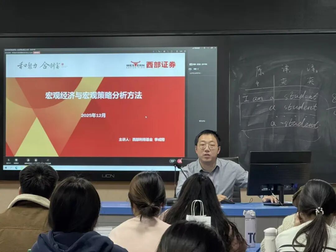 课程现场互动氛围热烈,两位讲师通过“宏观在你眼里是什么”“影响股票的因素有哪些”等讨论话题,引导学生主动思考;课后学生反馈,课程既填补了课本外的行业认知空白,又提供了可应用于个人理财的实操方法,对未来职业规划与财富管理均有重要启发。