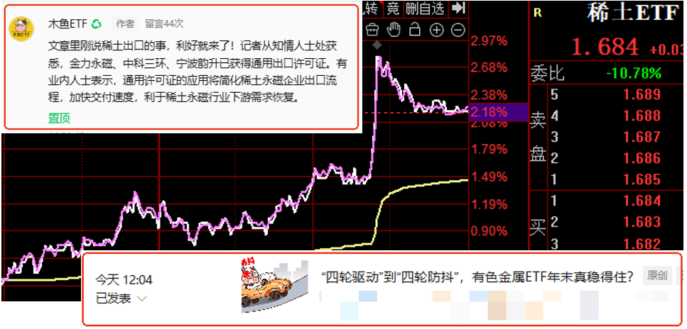 对于有色金属ETF,我们刚刚专题撰文分析《“四轮驱动”到“四轮防抖”,有色金属ETF年末真稳得住?》指出,稀土近期不够强的主要原因,就是出口还没起增量。然而午后就传来消息:金力永磁等三家稀土永磁企业,获得了通用出口许可证。可以预见,贸易正常化后稀土产业利润预期大增。