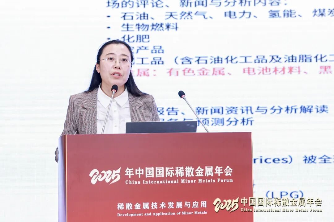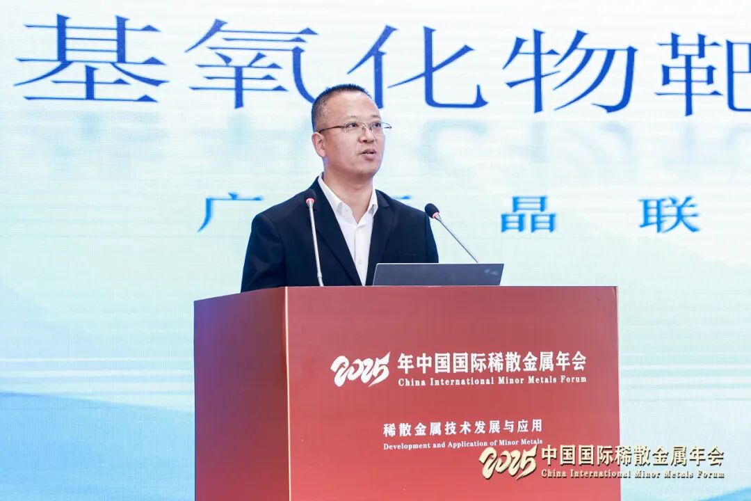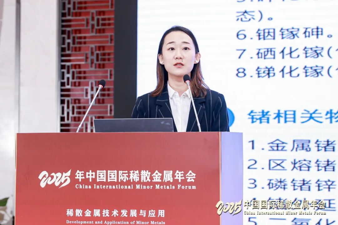 在市场研讨会环节,广西晶联光电材料有限责任公司副总经理戴海剑,阿格斯有色金属分析师沈红,中国有色金属工业协会稀散金属分会副秘书长李伊兰分别作《铟基氧化物靶材研究进展及产业化应用》《国际碲硒铼市场纵览及展望》《2025年中国镓锗市场运行情况》报告。