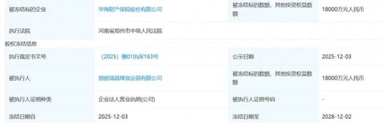 截至2025年12月,公司第一大股东那曲瑞昌煤炭运销有限公司持有的全部15%股权被郑州市中级人民法院司法冻结,冻结期限直至2028年12月2日。