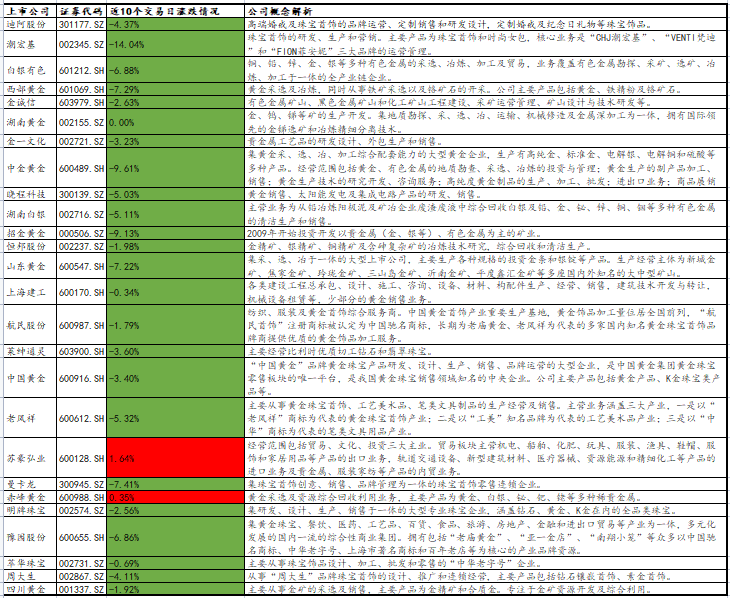 黄金关联股票:白银有色(601212)、湖南黄金(002155)、中金黄金(600489)、金贵银业(002716)、中润资源(000506)、恒邦股份(002237)、山东黄金(600547)、航民股份(600987)、莱绅通灵(603900)、中国黄金(600916)